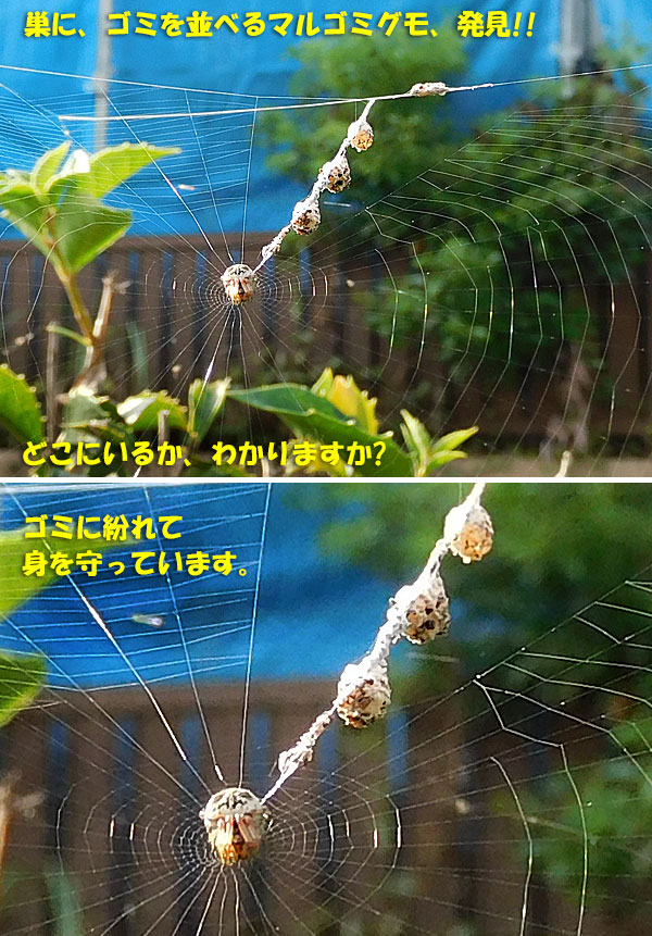 マルゴミグモ は、自分と同じくらいの大きさのゴミを並べて、