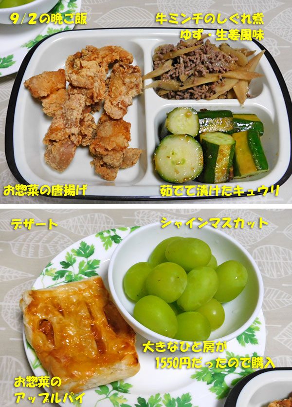 デザートのシャインマスカットは、地元の野菜コーナーにあったもの。