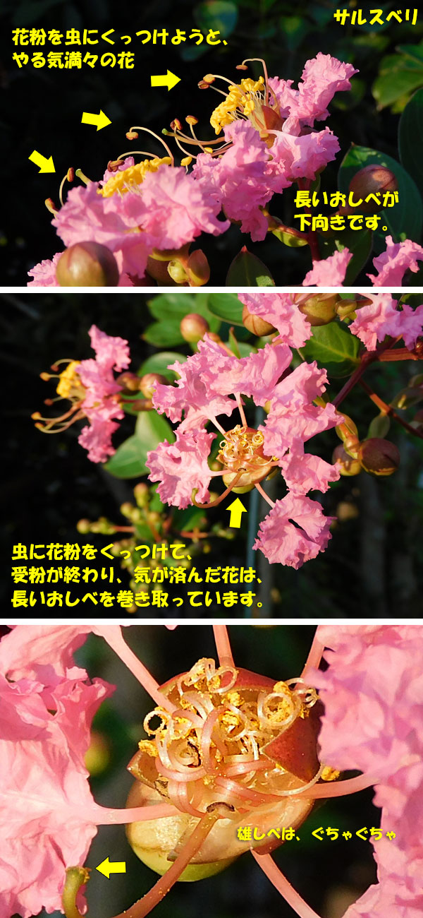 サルスベリの、まだ受粉していない花と受粉した花の違いが
