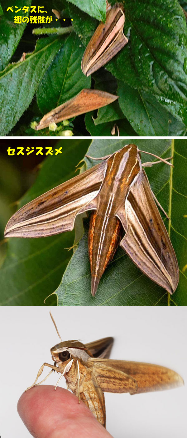 よく見たら、その横に、ナミアゲハの翅の残骸もありました。