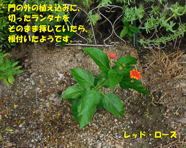 茂りすぎたので切っていたランタナ・レッドローズの茎を、
