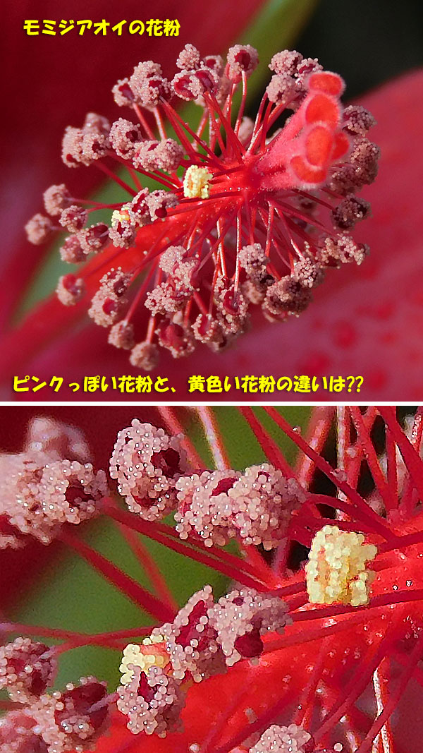 よく見ると、ピンクっぽい花粉と、黄色の花粉があります。