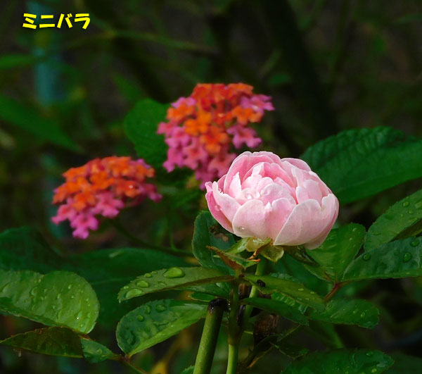 ミニバラが、ランタナに押され気味だけど、がんばって咲いています。