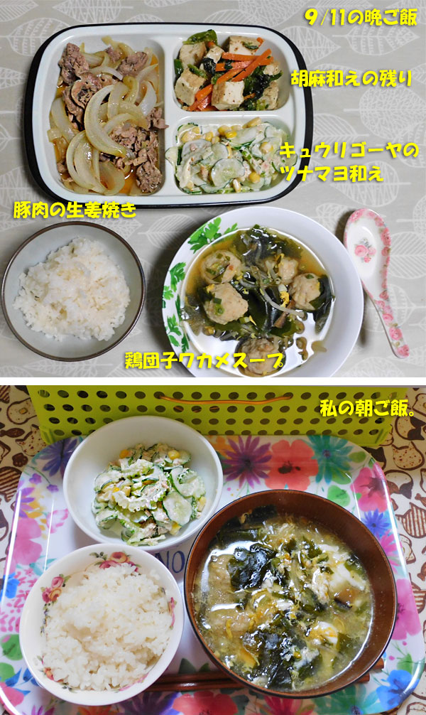 鶏団子わかめスープは、今朝はとき玉子も入れて、
