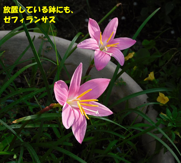 雨上がりだから、ゼフィランサスがいっぱい咲いています。