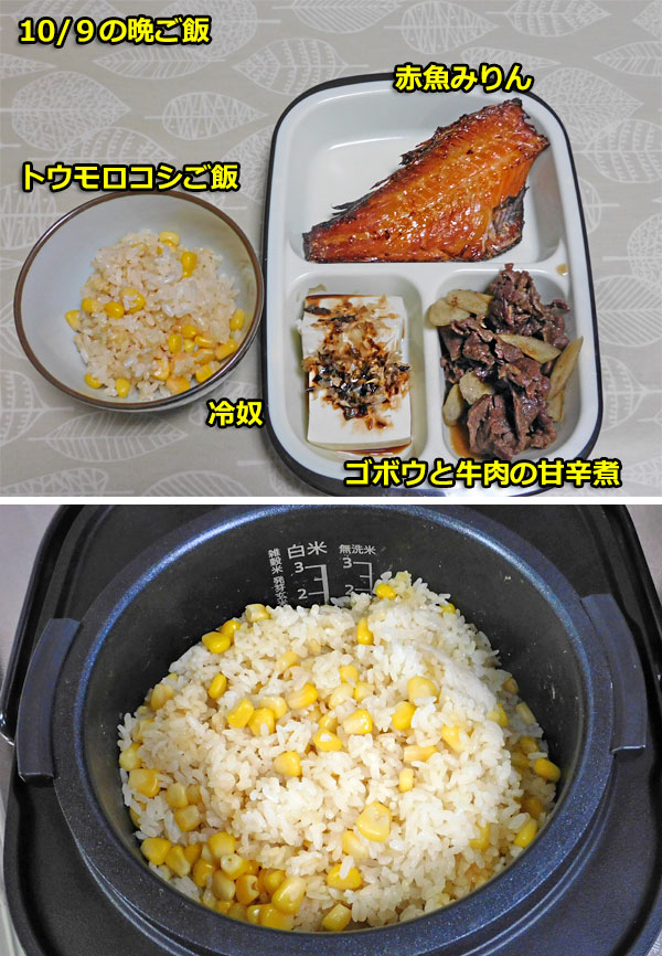 すぐに小さい炊飯器でトウモロコシごはんを炊きました。