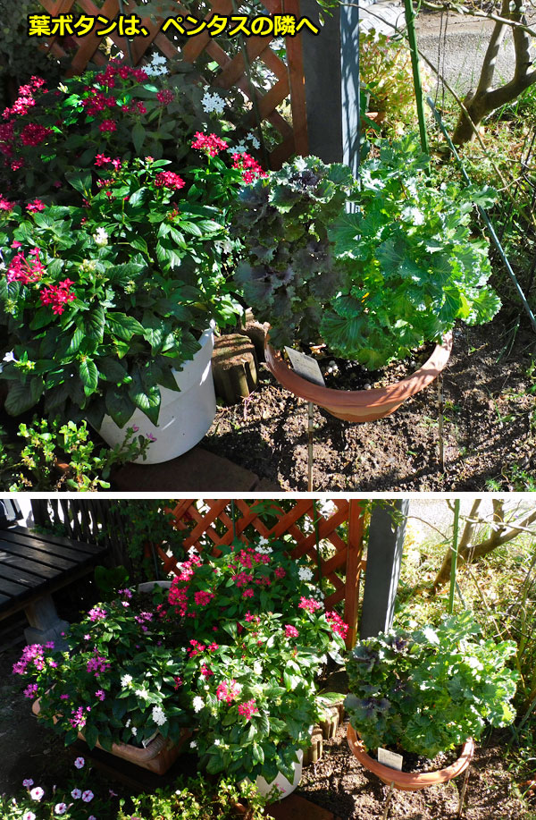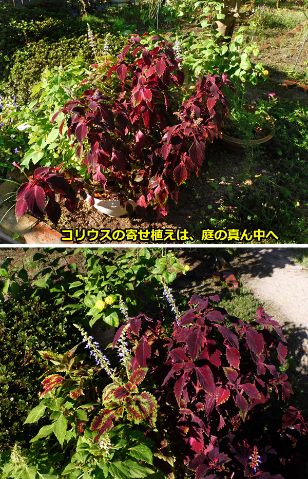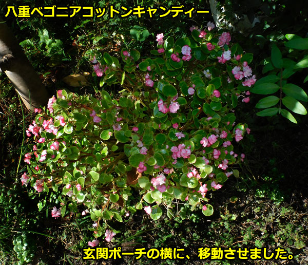 八重桜の下の木陰に避難させていた、たくさんの花鉢。