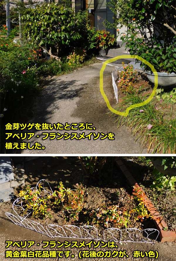 それから、玄関前の金芽ツゲを抜いたあとに、