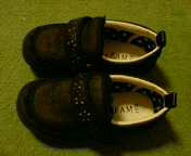 幼稚園の入園前にブランシェスとコムサイズムで靴を購入。ブランシェスの赤いスリッパンが気に入っていたのか、よくそれを履いて通園。気づいたら底が薄くなって、破れていた・・・。・・・で、急いでお買い物が嫌いなまいこをつれて靴を買いに出かけました。まずは、ブランシェス。このお店では3足目。デザインが可愛いのと、つま先の丸みや、かかとのクッションが気に入って、靴と言えばまずこのお店といった感じ。スリッパン1足購入。秋冬用なので茶色。ピンクのお花の刺繍がまいこは気に入った様子。サイズが無くお取り寄せ。・・・残念。次に向かったのはanyFAM。洋服は購入したことはあるけど、靴は初めて。黒色のベルトつきのスリッポン購入。小さい黒のレースと靴の中の黒の水玉模様が可愛い。 17cmなので若干大きい様子。中敷をつけて早速、昨日幼稚園に履いていきました。帰ってきてビックリ。黒いはずの靴が真っ白になるくらい汚れていた。靴の中にはたっぷりのお砂を入れて・・・。「子供なんだから、当たり前かあ・・・。」まいこが寝た後、靴の砂を落としました。「今日は、雨。泥だらけになって帰ってくるのかしら?」