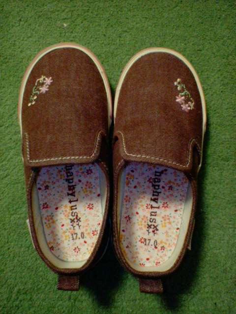 取り寄せていたブランシェスのスリッポンが入荷したと連絡を受け、さっそく買いに行きました。17センチは少し大きいので、一緒に中敷315円も購入。その中敷、5ミリくらいの厚みがあり、つま先の方の指の部分が靴にあたって盛り上がっていたので、カッターナイフで少し薄くして使用。 haphylus2730円