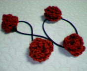 巻きバラの髪留めを作りました。(子供用にしては地味な色になりましたが・・)かぎ針で6目~10目の鎖編みから始め、1目が1枚の花びらになるように長編みなどを5~7目入れて編み、最後にくるくるっと巻いて出来上がりの簡単なもの。最初の鎖目を増やすと、大きなバラ。今回はコサージュではなくて髪留めということで、小さめに作りました。毛糸は極細くらいかしら?家に残っていた毛糸を使いました。