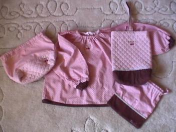 まいこはもうすぐ、年中組になります。2月にある発表会にむけて、園では、お遊戯の練習をしているようです。昨年の今頃は入園グッズを手作りしていました。今朝、トーカイ(手芸品店)の広告に入園用品が掲載されていましたが、ゆみママもトーカイと大塚屋(布地店)に行って、布や紐、レースなどを購入しました。作ったものはスモック、コップ袋、給食袋、シューズケース。それから、写真にはありませんが着替え袋を作りました。ちなみに、コップ袋は初めは給食袋のつもりでしたが、小さかった為、給食袋を追加しました。お箸ケースなら入るけど、スプーンと箸のセットのケースは思ったよりかさばり、入らなかったのです。スモックの袖口と裾のみ別布を使用したり、シューズケースや、コップ袋のピンクと茶色の間にレースをつけて見たり。ちなみに、このアップリケを切って使いました。オーガニックコットンやナチュラルテイストにぴったりなアップリケ!ハマナカ ワッペン 【トココ】 3ヶ1組 H457-693スモックや巾着袋は今までに何度も作っていましたが、やはり、幼稚園で使うもの!ということで気合?入れた作品です。