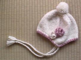 クリスマスの頃、まいこの毛糸の耳つき帽子を編みたくて挑戦していたのですが、なかなか上手くいかず、悩んでいました。その帽子が完成しました!・・・と言っても出来たのは年末です。(完成したものをビデオカメラで撮影していたのですが、ビデオカメラの修理で、電気屋さんに預けていました)1ヶ月近くも修理に時間がかかり、やっと我が家に戻ってきました。・・・ということで、本日お披露目!?です。お花のモチーフは、巻きバラの髪ゴムと同じ編み方です。ふちは、ピンク色に色を変えて、2段ゴム編みにしました。(メリヤス編みだと、くるくるっと巻いてしまうので・・・) まいこも喜んでくれましたが、1月になってあまり出かけていないからか、お正月に少し使っただけで、引き出しに入っています。(あまり外で遊んでいないし・・・)