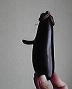 らくちゃんの実家から頂いたお野菜の中からこんなものを発見。なんだか人の頭みたいだと思いませんか?ひょろりと伸びたお鼻。へたの部分は髪の毛かしら?とっても可愛い茄子です。