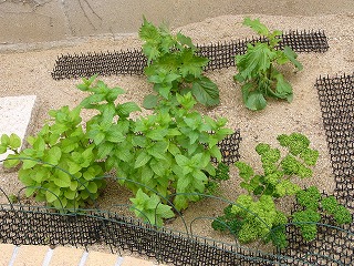 昨日は本当に疲れちゃいました朝から宇都宮行って、2時間で東京に戻って、打合せと軽く懇親会して、そのまま大阪に戻りというスケジュールでしたが、新幹線では行きも帰りも熟睡してました最近、パスちゃんのお散歩に行くために、朝40~50分早起きするようになって睡眠時間減ってましてね(年とって早く目が覚めるようになったんじゃないぞー)そのせいか、サッカーW杯への興味もいつも以上に無くなってますもっと早い時間に放送して欲しいわ (´ヘ`;)存じ上げてる関係者がいましてね、テレビに映らないか楽しみにしてるんですがずーっと見てる気力もなくて(笑) おまけに負けるし _| ̄|○と、ぼやいてますが、そんな世間一般情勢と関係なく、例のハニーファームの一部、ハーブ園はとても元気です 我が家は、2-3の陣形でして、後列ディフェンス陣は「大葉」兄弟ですなかなか優秀で、既に結構な枚数を我が家に送りこんでくれてます欠点は暑さと虫とに弱いんで、しなびてますし、虫食いもありまして (^_^;)梅雨に入って、がしがし毛虫に食われるようになってきましたどこから入ってくるのかなあ??中盤は、がっちりと不動のハーブ群で左サイドから、バスミント(お風呂ハーブ)、ミント(食用)、パセリが固めてます冬場に植えた後、もう死んだかと一時は思ったハーブ群ですが、春の訪れとともに元気いっぱいで、特にパセリは大活躍中です生パセリ鮮烈で美味しいねえハーブティーを作るとか言ってた真ん中のミント(確かスペアミント)は、未だ実力を発揮していません 頼むよハニー監督最前線に何を植えたらいいかはこれから考えないといけませんが、攻撃性の高い、猫よけの「ルー」と蚊よけの「蚊連草」のツートップかなあ・・・