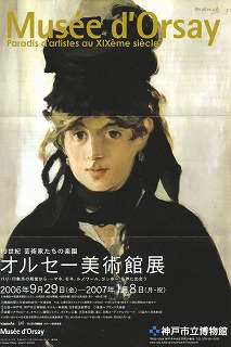 とあるかたのブログに紹介されてるオルセー美術館展最初に言っときますけど、密かに一緒に行ったなんてことはありませんからねそういう平和な家庭に波風立てるようなことは言わないようにってこんなこと思いつく人もいないだろうけど(笑)あと、自慢っぽくなるけど許してね・・・メルヘンのあとにはこういうのが ^_^;六甲山麓にある、とある大学に用事があって参りましたら、ちょっと時間が余りまして、あわてて招待券を持ってること思い出して(^_^;)夕方4時から5時(閉館)までのあわただしい1時間でしたが、何とか絵画中心にね、見て回りましたパリには2度滞在(PVと仕事と)したことがありますが、オルセー美術館には足を踏み入れていませんルーブルとベルサイユとユーロディズニーだけ (≧ω≦*)すごい絵があるんですねえ さすが芸術の都ですわた姫さん絶賛のブレイトネル「月光」はこれですか・・・・・・・・・・ま、人間好みはいろいろありますしね ♪~( ̄ε ̄;)わたしが立ち止まってしげしげ見た絵は10点くらい、見た順でファンタン・ラトゥールの「シャルロット・デュブール」(素敵でねえ・・)マネ「アンリ・ロシュフォールの逃亡」(海に小舟なんですが・・・)モネ「ルーアン大聖堂」(でかい絵 ふわふわ~って)ルドン「ペイルルバードの道」(すごい深くて暗くて・・欲しい)ゴッホ「アルルのゴッホの寝室」(もうね、完璧 絵の具の生々しいこと)セザンヌ「サント=ヴィクトワール山」(飾るんならこれかなあ)ロートレック「ポール・ルクレルク」(うますぎ(笑) さっさっさなんだけど)ストリンドベリ「波 VII」(「月光」の横の横 劇作家のくせにうまいねー)マチェック「預言者リブザ」(ミュッシャとスーラの混合 神秘的でねえ)てなとこでしょうか実物が無くて恐縮ですが、本当にすごい傑作が綺羅星のごとく・・・・最後に、わたしの心をつかまえて離さない一枚 じーっと吸い込まれてましたマネの傑作中の傑作「すみれのブーケをつけたベルト・モリゾ」 チラシの写真ですが、おわかりいただけるでしょうか実物を見ることができて本当に幸せで・・・