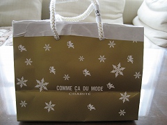 あけましておめでとうございます 皆さん良いお年をお迎えでしょうか我が家は悲喜こもごものお正月でちょっと体調こわし気味の長男とか、お年玉を甥に渡し忘れた(普通忘れますか? それもね、こっちはもらってるのにね(^_^;))ハニーとか、ちょっとぼけぼけっとしてる事件もありましたが、両親4人がかくしゃくとしてたり、姪っ子がだいぶん背が伸びてちょっと女らしく成長したり、よいこともたくさんありました小学校2年の甥子が、わたしが教えてやってたら、二桁のかけ算の暗算のやさしいのができるようになりましてね、嬉しかったなあなんてことを言いつつ、まあタイトル読んだ人で、去年の話知ってる人は「まーた、あいつやってるな」って考えてると思うんですよねそんなに毎年同じワンパターンではね・・・・やりました ○| ̄|_間違いなくやりました今日はハニーと二人仲良く(←ここ大事です)お出かけしましてね 大阪は天王寺の近鉄百貨店という大変に大きな店に行きまして福袋を3つも・・・真ん中はレピシエ改めルピシアの福袋ですこれねえ、来年からネットにしようかなあ今年はお姉さん美人じゃなかったしさ (T-T) 中身は3000円のAというやつで、紅茶6袋と日本茶2+変なの1+中国茶2ですおまけは今年の福茶の袋(去年までは缶のをくれたのに・・・)一番安いこれだけが売れ残ってまして、5000円とか10000円は昨日で売り切れたそうですが、そういう商売ってありかなあ・・・・すんごいつんけんしたベテラン販売員みたいな人にあたっちゃってあー、もうやめても良いかなあ、ルピシア・・・でもまあ、一年頂くことにいたしましょう一番下の袋は別にたいしたものじゃありませんコクランエネとかいうパン屋さんの1000円の詰め合わせ福袋ですこれも微妙でねえ、甘いパン中心に1200円分くらいかなあ最後にね、一番上がなんというか、例年おねだりされるアクセサリー福袋です今年は、ここにするということで「コムサデモード・シャリテ」なるお店を選択なんか怪しそうでしたけどね福袋をえいやっと諭吉様1枚でめでたく購入(本当は楽天カードだけど) リング2点(うち1点は本当に愛想なし(笑))、ネックレス1点に、いろんなチェーンとかにぶらさげるためのアクセサリー2点でしたお店の人のうたい文句は「5万円相当」って言ってましたけどねえこれが5万円だったらいらんわ(^_^;)それでもハニー喜びますけどねえ(ただし1年続きませんがねえ・・・・(泣))ということでねことしも一年先が思いやられますが、皆さんどうぞよろしく(^_^;)