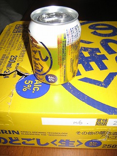 今日の新聞に、2008年のビール会社の販売量記事がそれによると、アサヒが今年も首位でキリンが2位ですが、その差は本当に少ないんですねサントリーがサッポロを抜いて3位になりましたが、これは「みねさん効果」によるところが多いプレミアムモルツの売り上げ増が大きいですね(^_^;)そんな中でビールが無くなった我が家某店でビール(もちろん第三のビール キリン「のどごし生」です)をポチッとしたんですが、送料無料で安かったんですが とってもそして、素早く届いたんですが あれれれ?なんかおかしいですよーく見たら 「のどごし生」250cc缶 って書いてあります 小さいですわたしのチョンボです某店の製品紹介にもずーっときちんと説明してありましたどうりで安いわけです今家では怒られながらこれを飲んでます物足りません・・・・正月早々 ┐( ̄ヘ ̄)┌ 苦いですねえ、ビールの味が(泣)