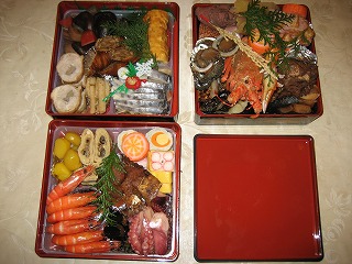 お正月といえばご馳走を食べるのも楽しみの一つとくにわたしはおせち料理がなぜか昔から大好物でした喪中で年賀は遠慮したわが家ですが、料理は良いよねーということでおせち料理は食べることにしたのですが色々多忙と言うこともあり、今年は初めてぜーんぶ任せて、詰め合わせのお重を予約購入することと致しました じゃじゃーんですこれ実は年末に今時白黒新聞チラシが入っていた、少々遠いところにある小さな料理屋のおせち料理詰め合わせです「この値段で、料亭や百貨店よりはるかに格上のおせちが」といううたい文句に惹かれましたローストビーフ固まりに伊勢エビ、鴨ロースト、イクラまで入ってる豪華版でそれ以外は大体6個ずつ入っていましたので、正月6人だったわが家にはどんぴしゃりでした この三段お重以外に小さめの鯛が一匹焼いて付いてますまた、年越しソバがちょっと付いてました(茹で上がりをタレで食べろってあって、そのタレがポン酢だったんで絶句したんですが、そういう年越しソバ食べる地域ってご存じですか?)味は少し濃いめでしてねえやはり早くから作ることもあって、砂糖と醤油で甘がらめの味付けでしたお酒にはいいですよねー それも濃いお酒にいいですよねーついつい進んでしまいましたやっぱり気に入った店で買った素材と自分で作った素材を組み合わせた今までのおせちの方が良いのは事実ですが、侮れませんねえ想像以上にゴージャスで子供受けしておりましたわたしは実はおせち料理の中でも「棒だら」の炊いたやつが一番好きなんですが、あまり賛同者いらっしゃらないでしょうねえこの棒だらと比較的にわが家の近所の超有名店「岸澤屋」の黒豆だけは、お正月外せないアイテムですー