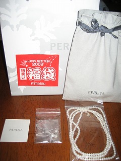 ということで2009年も静かに明けたわが家です今年は初詣にも行けないのがちょっと残念です忌明けには何とか行きたいところですねその代わりにずーっと飲んだくれてます今年は燃える男がテーマということで、わたしは真っ赤なナイキのトレーナーとジャージ姿です、顔まで真っ赤ですっごい派手です(写真なし)でも、それはそれで楽しいお正月かもですーでまあ、2日は初売りということで恒例近鉄百貨店阿倍野店へここは今年中には立て替えでなくなってるはず朝一番の百貨店福袋なんてとても無理ですからね午後くらいになって各店福袋目当てですが それでも混み合ってましたー最初に寄ったルピシアの福袋も欲しいのは売り切れてました腹立つなあ (`へ´)フンッそれも丁度最後のを握りこんだ人がまだうろうろしてるところでしたので、売り切れたところです ますます腹が立ってましたー(^_^;)それでも、ハニーはいそいそとお目当ての1階は宝飾関係ブランドコーナーへ数店のぞいたあとで「今年はここかなあ」と真珠のミキモトのカジュアルショップ「ペルリータ」の福袋お買いあげ ミニ真珠のロングネックレスとJAL機内販売していたという三連真珠のネックレス、そしてサイズ調整で預けてきたので写っていませんが、真珠のリング1つの福袋です値段は聞かない方がいいです、真珠系は高いです、トホホ(泣)また、楽天カードのポイントがたまりましたそして、「わたしは、よくなくすの」の一言で これは別枠で初売りのイヤリングお買いあげー(これは安ものです)ピアスだとなくさないのが良いですねーわが家はしょっちゅう無くなるんだそうでこれで帰ればよかったんですが紳士物を見ようとエスカレーターで昇る途中に婦人物フロアがあってあれは百貨店の陰謀ですよね「あ~~~ちょっとちょっと ちょっと待ってーっ」て「丁度バッグが欲しかったのーっ」て降りちゃいましてねまたね、わたしがバカなものですからね 一緒に福袋見ながら「こんなバッグ類の福袋、中見せてもらわんと、よう買わんなー」って店員さんに大阪弁でぼやいたら「ご主人さんの志に免じて少しずつ全部見せちゃいましょ」ってそこにあった、残った福袋(8つくらいあった)のジッパーを少し開いてハニーに全部のぞかせてくれるんですよ完全に百貨店のベテラン店員(美人でした(*^_^*))に負けました バッグ二つ入りの福袋白っぽいのが「ミラショーン」、黒が「シャルルジョルダン」だそうですがうちのハニーに言わせると特に黒は「お値打ちもの」だそうで、のどをゴロゴロと鳴らして喜んでおりましたもちろん、紳士フロアは通り過ぎただけで帰りましたが _| ̄|○まあ、よかったですよ 楽天ポイントが増えて・・・