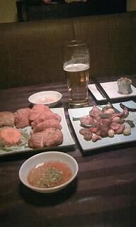 卒業間近、受験生(期待値低し)、中学生ニキビまっただ中の3人兄弟なんてあてになりません夫婦助け合って生きるのがわたしの理想の姿会社の定年には長男(でも誰でもいいですが関西で働くの)にでもこの家を譲って、退職金で瀟洒なマンションでもターミナル及び病院間近で購入して老後を楽しく過ごすのがわたしの夢でありますところで、初夢は、地球を眺めながら、温暖化→寒冷化へ歩みを切った世界にどう対処するかを真剣に悩むというものでした・・・・・・・・・・・・なに言ってんだ こいつはと思った人まあいいじゃありませんか要は子供は嫌がったので夫婦二人で昨日食事に行ったっていう話ですー 大阪某所の某タイ料理店で珍しくハニーが席はずしてますのでパチリとタイ料理って初めてかも知れませんめんどうなのでカップルメニューなるものを窓際席でいただきましたこれは揚げ物二種と揚げた鶏のカシューナッツ炒めです 奥に生春巻きも炒めた鶏肉はオイスターソースの風味が見事で美味しかったですよ揚げ物は・・・まあ、ビール飲めますし(^_^;)たれの透明な方はナンプラーと塩梅のソースかなんかだと思いますが、うげげげっていう味で (T_T)シンハービールなるタイビールはあっさりで飲みやすかったですタイに行った駐在員が飲み物では文句は言わない理由がわかりましたちなみにメコンというウィスキーは飲まない方が良いとか聞きましたが、真偽はわかりませーんおせちやふぐのあとのタイ料理はいいですよねーカレーなんかと同じですよねこの前日に、焼いた鯛をつついた残りで鯛ご飯を炊いていたので「2日続けてタイ料理ー」と騒いでいたのはわたしです ( ̄+ー ̄)v