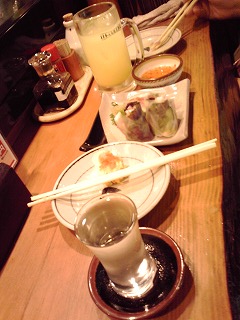 昨日は実は出張してました(近地)少し早めに仕事が終わりましたのでね家に電話して、皆で食事でも行くかと声を掛けましたが、例によって子供たちは「めんどくさい」「知り合いにあったら恥ずかしい」などと言いつのるもので、やむなく、子供には近所の弁当総菜デリバリーに頼んで、「カツとじ弁当」と「唐揚げ」「サラダ」をそして、それならハニーと二人で、酒でも飲むかと、ちょっと出たところの居酒屋にふらーっと初めて参りましたここがメニューは、180円、280円、380円という大変に安い店なんですが、なかなかに良い店でした日本酒の在庫整理中ということで、純米酒、吟醸酒などを一杯300円からで出してましたのでね、これでまた調子に乗って、わたしは4杯、ハニー2杯飲んじゃいました 最後の方の写真ですが、うちの奥さんがシークワーサー酒なんか頼んでますでもこれもなかなかさっぱりしていいものでしたね串カツ、焼き鳥、だしまきなんていう定番から、ニジマスの塩焼きとかアボカドマグロ、生春巻き(写真)などもあって楽しめましたあとね、でっかい岩塩(赤かったので南米系?)があって、それを削って塩としてますので、美味しいです例によって、息子の教育のことなどぐだぐだと話してましたが、意外な事実(うちの奥さんは当時の女性には珍しく浪人してるんですが、実は全部落ちてたのでやむにやまれずだったという それって今文句付けてる次男と一緒じゃーんみたいな話です 以前わたしには行きたい大学に合格しなかったから浪人したって嘘付いてました 履歴詐称だ~~~(^^;))が判明したのでそれはそれで楽しく(^^)さーて、この写真でおそらく50Mのリミットですどうしますかねえ未だにぐじぐじと決めかねているわたしです 月100円払うかなあ