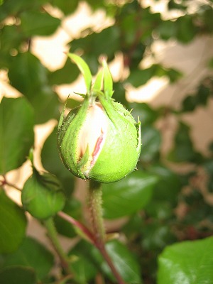 ちょっと断定的なタイトルにしちゃいましたが咲きますよ 咲きます バラ(^_^)v これはアブラハムダービーのつぼみですが、これ以外にも我が家のミニバラ2種 イングリッシュローズ3種ハイブリッドティー2種 ツルバラ1種の中で、いつも一番遅い、HTブルグンド以外にはいっぱいつぼみが付いてますというか 思ったより付きすぎかも知れません去年までと比較してもERは同じ状態(素焼きの植木鉢)なのに、つぼみ付きの良さが明らかに違います比較してみると唯一違うのは・・・・「牛糞」・・・・・やっぱりバラと相性が良いという「あれ」のせいなんでしょうか??そんなことって・・・・化学肥料と牛糞のマッチングって・・・しかし、驚きましたねえ特に元気なのは、地植にしたHT「ティファニー」でして、大きなつぼみをもたげるようにして、もうすでに幾分芳香を撒き散らしてますそれに釣られるようにつぼみを折り曲げて巣作りをした毛虫が一匹ゆるさーんと捕獲して即座に退場を宣告しましたが、ぐんにゃりと白鳥の首のように曲げられたつぼみが不憫で不憫で、もうだめかも(泣)家を出るときには、既にミニバラは仲良く1つずつ咲きかかっていたので、この暑さですし、今日は完全に開いていると思いますこれから特に鉢植えは水切れだけが恐怖ですね我が家はやや小さめの植木鉢なものですから、このシーズンでも毎日1回でいいような気もします(今は1回/2日)うちの奥さんは、ちょっとへんぴなところに寮住まいが決まった長男に会いに行きたくて仕方なさそうですが、そういうのはいけませんねバラの世話の方が大事です(笑)