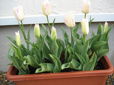 うむむむ 100円かかってますのでねこれからは、しっかりと稼ぐべきかなあ(^_^;)アフィリエイトってしたこと殆どありませんが、これからバンバン(嘘)ということでとうとうこのブログも有料化です月100円って微妙ですよね 100年で12万円(笑)でもこれで写真は基本的に無制限ですね 喜ばしいです微妙に大きく掲載しようとするわたしですところで、今日はなんとしてもこれを掲載しようと思ってました南に住む、美人母娘の方が親切に送って下さった素敵なプレゼント意気に感じてしっかり水もあげて日に当てて育てましたつぼみが長かったんでやきもきしましたが、ついに咲き始めまして そして、この金曜日くらいから満開になりました素晴らしいですね やっぱりきれいですこの球根を下さった方のイメージですね可憐で且つ清楚で、でも艶やかで(こ、これくらいでいいでしょうか? る○○うさん(*^_^*)) 美しいチューリップですフリンジ咲の代表選手といっても良いでしょうね 一つだけ白い花があるのが面白いですねこれはこれで、またかろやかで、きれいですねほかのチューリップはあまりうまくいかなかった(葉が大きくなってその後に寒くなったせいでつぼみが付かなかったものが結構ありました)ので、このハウステンボスが咲いて良かったです大成功、大満足のプランタでありました (^_-)v