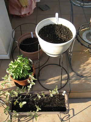 今日は元気ですー昨日はずーっと寝てましたそしたらとても元気って犬みたいで(^_^;)完全ドライで過ごしましたし、鼻も詰まらず寝やすかったです月曜の夜は、ワインのお店で少々頂きすぎましたシャンパン(絶品)2杯と白2杯、赤1杯か2杯は覚えてるんですがソムリエ資格を持つマスターが蘊蓄を衒わずに出してくれる店ですすっかりファンになりました料理も少々高いのですが気が利いて美味しかったです 店を教えてくれた人に感謝ですね但し、3人で23000円くらい・・・ちょくちょく行く店ではないですが(^_^;)帰ってシャワーして楽しく寝たのは覚えてるんですが・・・なぜか膝までずれてまして・・・わたし、パジャマは着るんですが、下着は・・・ノーパ・・・風邪もひきますよねー あー恥ずかしい (*^_^*)という告白が終わったところでこの前にあった話ですが 野菜系の苗を植えました内容は シシトウ2 唐辛子2 トマト1 大葉2(但しプランタ1) そしてトウモロコシ1です黒いのは例によって猫よけです 時々まだトラネコが来てます強いです パスと真っ向からやりあってなかなか逃げませんトウモロコシは苗で植えるモノじゃないし、1本から1個しかできませんから意味ないんですが、どうしてもやってみたかったそうですこの畑ゾーンは段々地味があれて、収穫も落ちてますし、変な終わり方(トマト等)もあったので、秋以降は何もせずにひたすら耕してメネデールと肥料と蛎殻と堆肥で土壌改良だけしました今年どうなるかはわかりませんが、幸い掘った感じでは土ふわふわです問題はこいつ シシトウです実は最初の年に、(嫌いだけど)シシトウでも作るかと言って買ってきたら、育ててみたら唐辛子の苗で、これがまた爆発的にできたので大喜びしたという経緯があり、それ以来毎年「唐辛子」を作っている我が家そうです ハニー間違えました「トウガラシ」と書いてあるゾーンから取ったという本人はプンスカしてましたが、ビニールポットにははっきりと「シシトウ」ってレジのシートにも「シシトウ」ってよく間違えますねえ 本当にそれでやむをえず、次の日に購入したのが ほんもののトウガラシというわけですこのトウガラシは本当に役に立ちますのでね我が家にはニンニクが元気で育っていますそして、トウガラシのフレッシュができますオリーブもあるのですが、さすがにオイルは無理ですからそれを購入すればあっという間にそこにイタリアンな世界が待ってます今年は全部すり下ろしてソースにして見ようかなって考えてるんですが、考えただけでもうまそう且つ太りそうです(^^;)月曜のお店で出してくれたソースにニンニクを牛乳で煮て臭みを取って、アンチョビ(瓶詰め)とオリーブオイルでまとめたモノがありましてばかうまでした、・・・が我が家ならこれにフレッシュなバジル系も入れることができます、イタリアンパセリ等混ぜ込んだらたまりませんね今から楽しみでねえ困ってるんです(笑)