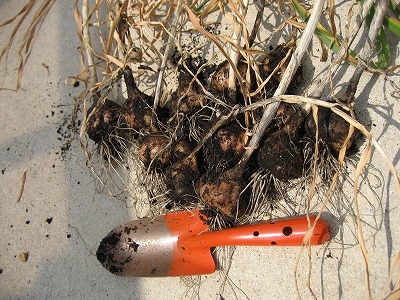あたりでーす見事にあたりです良く覚えてくださいました アーティーくんのことわたしが愛称つけてるのは、このアーティーくんとビンカマくんだけですがアーティーくん1号は残念ながら枯れて、今は2号だけです 元気でしてねえまた実が3つ(実際は花前のつぼみ)なってますがあまり気合いがはいらなくて去年は美味しくなかったんですがねえ (´ヘ`;)まあ頑張ってみましょうか今日もちょっと庭仕事したんですがショックだったこと・・・チューリップの球根がすごいことになってましたプランタで上が枯れるまで待ってたんですが今日掘り返してみたらなんと怖ろしいことに、球根がベタベタにそして中にはナメクジがうようよと・・・・ダベンポート、ヨハンシュトラウスなどは完全にやられましたそれ以外のものもかなりやられました来年はちょっと考えないと行けません プランタの足のぼって行き着いたんでしょうね 怖ろしい奴らです 本当に幸いにこのハウステンボスのプランタには行かなかったようですしかしながら、この球根には栄養が少なかったのか分球していますがどれも大きくありません・・・残念ながら来年は育てる年にしないといけないようですねそれでもほっとしています これは乾かして来年まで大事にしまっておきましょう・・・