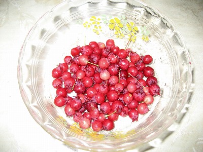 参りましたねえジューンベリーのことなんですがこの2年は見事に実を楽しませてくれました今年も毛虫をテデトールしたりして楽しみにしてましたが・・・・やややや?なんか実の数が少ないです明らかに減ってます そして、実が無くなって枝の部分だけ残ってますこれは鳥ですね 明らかに鳥に食われました去年までは全然大丈夫だったんですよよく考えれば今までは隣家の倉庫があったんですそれが今年は隣家の土地は二分割されて、我が家の隣は今や貸し駐車場鳥からすると一気に視界が開けて食べ放題ですね朝ばたばた音がしてます(泣)それでも競争して採ったのが 毎年の半分にも及びません初物としてそのまったりした味わいを楽しんだあとは速攻でジューンベリー酒にしてみました半年もすればまた出来上がるでしょう 今年はノンシュガーで行きますちなみにいつも書いてますが、実はねとっとして中に細かい種が入ります味はザクロとかに近いんですが、香りとしては梅干しの種の中の天神さんの風味に一番近いです ・・・・わかりませんでしょうね そうですね (^_^;)ものすごく足の速い果物なので、(採って半日で黒く傷みかかります)残念ながら差し上げるわけにはいかないんですが、毎年のご報告までー