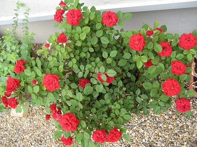 バラはイングリッシュローズだけではありませんからね我が家の他のバラもまだまだ元気いっぱいです一番すごいのは、安売りで買った名も無きミニバラです去年までに比べて鉢を大きくした効果でしょうか 花が大きめです カリナの方は同じミニバラでも固まって咲いてます去年までとちょっと咲き方が違いますが こういうのスプレー咲きって言うんでしょうかいずれにしても固まって咲いてますので見応えはありますねわたしのつるアイスバーグは例年あまり成績良くないんですが今年は少し多めに咲いてくれました 白くて純白の花が素敵ですねツルバラだから何とかしなくちゃいけないんですが この花は長持ちしてくれるのがちょっと嬉しいですね白い花が咲いているとほっとしますよね暖地なのにようやく今頃つぼみが上がってきました 例の深紅のバラ「ブルグンド81」です今年はどっしりと地植えしたので随分幹とかはしっかりしていますつぼみはまだ小さいですが、今年はどれくらい立派な花が咲くか楽しみです昨日今日とヘビー懇親会が続きますのでばて気味ですがウィルスなんかに負けずにがんばりまーす