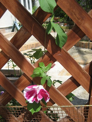 イングの森の福袋シリーズすごいことになってます地植えは基本的に全部ダメですねおそらくナメクジだと思います 或いはほかのモノかも知れません大事なホスタも調子悪いです逆に鉢植えは全部元気ですどんどんつぼみが出てそして元気良く花が咲き出しました夏場に花が咲くと嬉しいですね第一号はこの花から 朝顔が咲きましたつぼみもいっぱい付いてますこれは真昼なので萎れてますですが、大輪ですねラティスの低い位置に植木鉢掛けて上に這わせてご機嫌です当面、このシリーズで御退屈でしょうけど、わが家の夏花壇(植木鉢だけど)を見て頂くことに致しましょう寄せ植え嫌いなので単品ばっかりですがご容赦のほどー