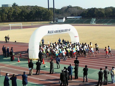 走ってるのを見ているとわくわくするのは事実ですね実際に走る方がもっと面白いですよと促してくださる方がいるとは思いますが、さすがにこの年この体型で走るのは危ないですから(^_^;)ウオーキングかステップ運動にとどめるように致しますでも見るのなら大丈夫ということで、昨年に引き続き、わたしが勤務する会社も参加した大阪の駅伝大会(いわゆる実業団向けですね)の応援に行ってきました まさしくスタートの瞬間の写真です場所は長居競技場の第2競技場 メイン競技場はセレッソ大阪のホームで、国際大会(世界陸上とか)にもよく使われますが、第2でもごらんの通り立派な競技場です応援はのんびりしたもので、場所取りはしてるんですがまだ早いんで誰もいないところとか結構ありまして笑えます(遠慮無く使わせてもらいました)このスタートは1~2部の実績あるチームですが、このあと3~7部と午後に向けてずっと遅いチームも出ます ちなみに1~6部は男女区別無し(結構女性ランナー混じります)で、7部は女性のみのチームです職場のジョギング仲間とかが多いですねさすがに大阪府警と機動隊とかのチームも多かったです(^_^;)選手の皆さんとスタート前に雑談したんですが、意気盛んでしたたまたま、今年標準記録突破して自費で大分別大マラソンを走ることを決めた人がいまして、その話で盛り上がりました応援行きたいなあ 社費で出張なら ^^;ま、途中で寒くなって帰りましたので、結果はまだ知らないんですが昨年はウン十位でしたので、ことしもウン十位だと思いますー