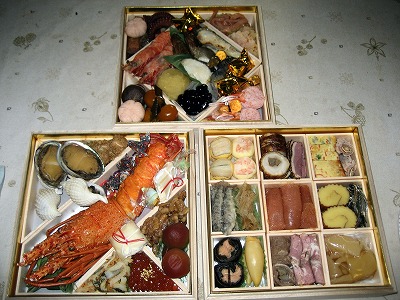 遅くなりましたが、おめでとうございます皆さんのご多幸を心よりお祈りします何と言ってもお正月には非日常のことをするのが好きな私勿論恒例のこともハニーと二人で行ったりもするのですが(今度ね(^_^))それ以外に、楽しみにしているのが「おせち」と「お雑煮」でありますお雑煮の話は以前もしましたが、我が家は基本的には私のルーツである北部九州の雑煮を食べることが多いですハニーは関西ですが気に入ってくれてますのでねそれ以外にも白味噌の雑煮や江戸っ子の雑煮などを食べたりしますが、今年は結果的には九州風のみでした ブリに鶏肉、根菜たっぷりに、本当は「あごだし」といいたいところですが、普通のかつおだしでそしておせち料理は、過去結婚して実家に行かなくなってからずーっとハニーの手製(+既製品)が多かったんですが、昨年は近所のチラシが入っていた店に頼んで購入、今年は楽天で九州のお店に頼みました なかなか豪勢でねえこれなら十分です 昨年はくどい味付けにちょっと閉口しましたが今年はおいしかったですー3が日もたなかったですね、ほとんど2日に食べちゃいましたそして、旧式な我が家、必ずお屠蘇も飲むんですが、最近「屠蘇散」も入手しにくくなりました 飲んでるお宅はまだありますか?とにかくお正月は義父も楽しんでくれたようですし、長男も無事先ほど帰りましたし、何よりですねえ、よかったです私は明日も休みなので 今日も飲んだくれるつもりですご馳走は不要です いい酒さえあれば幸せですよねー皆さんのとこにも、余り酔っ払わなかったらお邪魔しに行きますぞー(あるいは録画したのだめちゃん(アニメ)見てるかもしれませんが(^^;;)