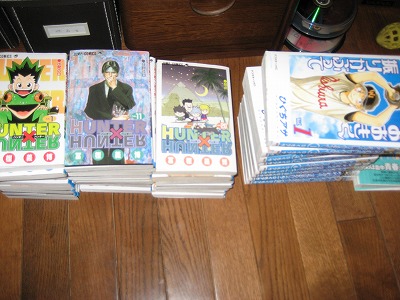 本当にねえうちの息子どもはなんというか困ったものでして毎日遊びほうけてます 受験生なのに・・・(泣)まあ結果は自分にはねかえる訳ですからねあとで慌てても知りません今日も今日とて、ちょっと片付けしていたらこんなものが2人の押し入れから コミックの魔力ですねえよくこれだけ買う財力がと思ったら、長男が大学生のときに購入したもののようですね 押し入れに隠しておいたのを見つけ出した模様です「HUNTER×HUNTER」 と 「おおきく振りかぶって」ですね特に前者はなんじゃこりゃと思われる下手くそな(手抜きのが正しいかな)絵なんですが、すごい人気があるんですよね 作者は相当に変わってる?みたいで始終休載しながらも続いてるとか後者はこれはまたなんというか、マニアックな高校野球漫画で感心はしましたが、個人的にはあまり好きじゃないんですが・・・でも、なんというかすごい漫画ですねえいずれにせよ、こういうのどうしたら良いのかなあと悩んでまして長男に了解を取って、ブックオフかなあと考慮中ですー(^_^;)