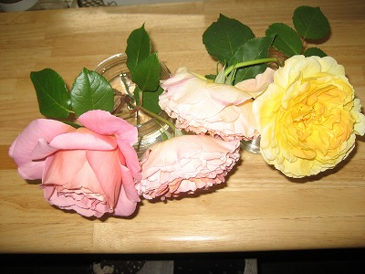 とくくっては失礼ですが、残りのバラもちょっとだけここに出来具合を ザピルグリムというイングリッシュローズも一番花が終わりましたねこのカップ咲きはなかなか大きくて今年は見事でしたが、もともとうちのERの中では香りの薄い方でして、今年は全然ダメでした こうやって花だけは「ぼこぼこ」咲いてるんですけどねしかしぜいたくなもので、今年は「飽きたな~~~」と眺めている自分がいますね、本来大喜びなんですが、花がい~っぱい咲くのも善し悪しです名も無きミニバラも花をいっぱい咲かせています これはこれで、きれいですよね毎年楽しませてくれますこれは外から見えるところで育てていますので、ときどき(生協なんかで近所の方が来られたときなど)「きれいね~~」と褒めてもらうことも多いですもともと、どこかで投げ売り380円の品物でしたのでね我が家に相性がいいのか、すばらしくしっかりと株がたってくれまして、毎年数多くのこの華やかな赤いバラで、出勤時のわたしの目を楽しませてくれています今年は、その他のバラの香りがあまりしませんでしたので、もともと香りのないミニバラでも十分じゃないかとかえって思い始めました違う色を来秋にでも買って揃えてみたいと思います以前にクラウディアというミニバラを枯らせましたが、明確にネキリムシのせいだとわかりましたので、これからは、ちょっと栽培にも自信ありでいけそうなんですが(^_^;)ハイブリッドティーらしく、地植したら花がものすごく大きくなってびっくりのティファニーの一番花最後のイメージです ちょっと花が大きすぎのような気がしてます もう5年目ですから、株としても全盛期に近いんでしょうか? ただ、小さくするってのも変ですしね(^_^;)お疲れ様でしたといって、全ての花を切りましたーこれで秋まで静養させようと思いますさ~~て週末ですねわたしは土曜日は走り回る予定ですがさあ、どうなることでしょうか・・・・