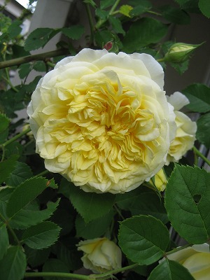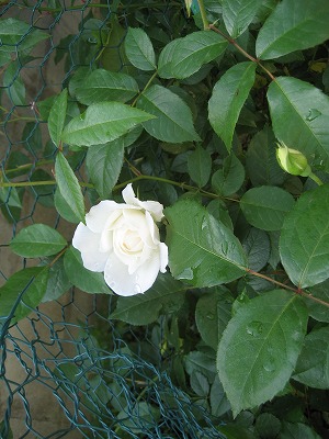 そもそも、15世紀に「バラ戦争」なる戦乱があったわけですよねランカスター家の紋章「赤バラ」VSヨーク家の紋章「白バラ」そんな時代にイギリスではバラが普通に栽培されてたんですねえわたしはどっちかというと「赤バラ」派ですが、皆さん如何でしょう(^^;)それでね、我が家も「黄バラ」と「ピンクバラ」、「ミニバラ」が優勢だったんですが、ここに参戦してきました、白いツルバラ アイスバーグのつる性のものです非常に有名な白バラです 強健ですし、花つきもいいと言うことだったんですが、我が家では真価を発揮しないままに幾星霜今年は地植にしてみましたが、先日花が咲き出し、そしてつぼみだらけに 我が家の庭は、這わすところがないので、今までは適当に鉢植えでオベリスクでからませていましたが、今回は後ろに金網を設置、それに折り曲げながら誘引していました皆さんご承知のことでしょうし、前にも書きましたが、ツルバラは水平になった部分に花を咲かせる芽が出てくるそうでして、昨年までのわたしの育て方では水平部分が少なかったんだろうと思いますそして数日暖かいので一気に来ましたー アイスバーグって、こんなに花が咲くバラだったなんて・・・知りませんでした 一度に5つ以上咲いたのは珍しいですこの咲きっぷりの良さとそして木の勢いの良さはすごいですシュートが出てくるんですがあっという間に成長して、それを留めるところがないんですよねーつぼみはまだまだ上がっています今年は一気に花数のNO1にのし上がりました惜しむらくはこの花は全く匂いがありませんこれで花が香れば最高のバラなのにとは毎年申し上げてますが、今年ほどそう思ったことはありません但し切り花での保ちは我が家では一番です仏壇にも供えましたし、いろいろなところで活躍してくれていますーわたしも白バラ派に鞍替えしたくなるような勢いでありましたー