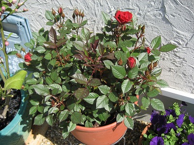 暑いです すごく暑いです 部屋の温度は27度今日は特別に冷房入れようかと思います(最近は肌寒かったんですが空調はずーっと切ってました)実はこの暑さで一気に色々開花したんですがとりあえず連休前に開花していたミニバラの写真です カリナの方だと思いますが真っ赤なバラでこれで4年目に入ったでしょうかもとはとれました(笑) もう一つの名も無きミニバラですが実はもう咲いたと言って良い状態に変わってますとにかくこの2日間暑すぎました明日から、3日間(ここ重要(^^;))会社ですねペース配分を戻さないといけませんねとりあえず皆さん早寝しましょう お休みなさ~~~い (-_-)゜zzz…