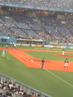 なんて書くとかっこいいんですが実際は糟糠の妻とのお出かけ(^^;)皆さんのように素敵な場所でもなくてやすーく楽しんできました 京セラ大阪ドームでの「オリックス=ロッテ」戦ですオリックスは木佐貫、ロッテは成瀬が投げ合いして素晴らしい投手戦9回にロッテ3点、オリックス2点で決着が付くまではゼロゼロの試合を『7回まで』見ました緊迫してましたけどねえ夫婦でちょこっとつまみ食べつつビール一杯だけ飲んで盛り上がらなかったことおびただしかったです(^^;)ものすごくファンというわけではありませんが、オリックスが時々大阪府民のための日に外野もしくは内野自由席に限り500円という日を作ってくれるんですよね、これはやっぱり行けるなら行きたいですからねえあんまり遅くなってもなんですので、夜8時で帰り支度そのまま、ここで夕食です 「プロント」というチェーンのイタリア料理店なんですけどね皆さんも結構お近くにあるんじゃないでしょうかわたしも最寄り駅に穴場的に(わかりにくい)1軒あるものですから金曜日の夜でも大丈夫だろうと f(^ー^;今丁度、例のプレミアムモルツのフェアやってましてそしてちょっと珍しい黒プレミアムモルツがあったのでぐびぐびっとやってきましたーチキンのピザ、ソーセージ、イタリアンポテトただこの最後の料理って初めて聞きましたgoogleで調べても色々書いてますがバラバラですそして、実は美味しかったですかなり特殊な豚肉(そぼろ風)が混ざったフライドポテトなんですがローズマリーがたっぷり入って炒めてましたわたし初めてローズマリーの美味しさに目覚めちゃいましたわが家にあるんですよ 育てて3年目初めて役に立ちますね(*^_^*)家でも作ってもらいましたが(ベーコンで代用)結構グー(^-^)g""ですよ嬉しかったですー帰る前に子どものお土産に、大阪名物「たこ焼き」 さすがにこの有名店でも夏は行列も少なく空いてますわたしはたこ焼きは大好きですがジャンクフードと思ってますので、家で作ったら十分と考えてますが、大阪に遊びに来たら「たこ焼き」食べる方多いですよねこの「やまちゃん」は天王寺界隈では最高の評価がある店でかなり分厚い鉄板で微妙な火加減で作るためか、外側カリの中トロトロの極致みたいなアツーいたこ焼きですベスト「何も付けず」 レギュラー「ソース&のり」ヤング「ソース&マヨ」などと書いてますよねわたしはソースなしのたこ焼きは邪道と固く信じてますのでレギュラーとヤングで美味しくいただいたことを報告致します(^_^)v