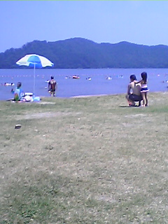 嫌がるハニーに息子を任せ、木の下で休憩中