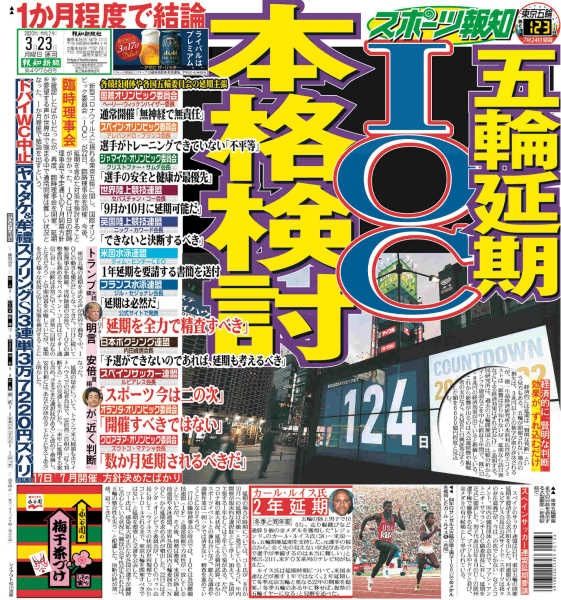 【23日のスポーツ報知】1面・五輪延期IOC本格検討 1か月程度で結論2面・白鵬無観客場所で44度目V3面・朝乃山大関昇進へ4面・川上哲治氏生誕100年5面・田口あるぞ開幕カード先発6面・小園開幕三塁猛アピール7面・松坂ライオンズ14年ぶり勝利8面・西村日本人初コロナ退団15面・ドバイ国際新型コロナの影響で中止19面・澤部渡ブレークの予感20面・天国の兄と一緒に走る 東京五輪社会学21面・K-1強硬開催 さいたまスーパーアリーナ22面・岡本絶好調 最年少三冠王狙えるます。ブログランキング」に登録してます。↓ ↓ ↓https://a.r10.to/hziv71人気ブログランキングほんとに感謝しています今日も応援お願いします📣📣📣ありがとうございます!森永製菓 楽天市場店