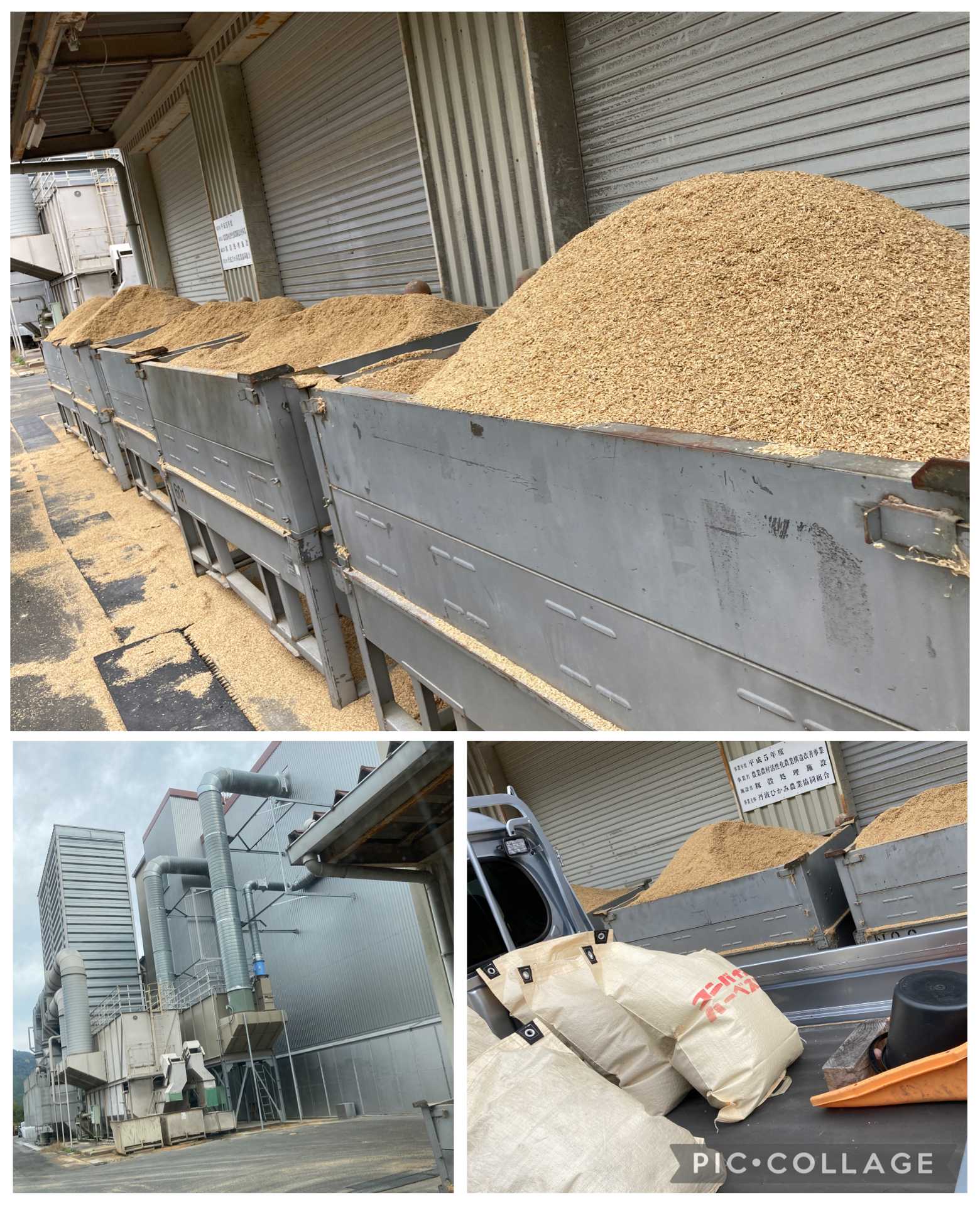 営農センターには大きな容器に入って籾殻が山積みになっていて