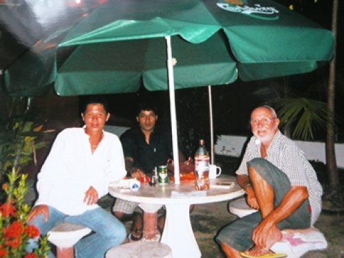 バンガローのフランス人のおっちゃんと屋台に朝ごはんを食べに