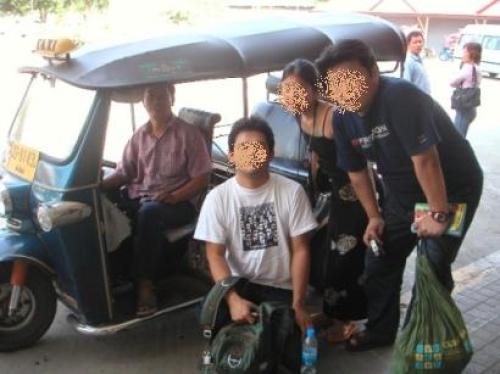 で、チェックインしてまずは3人でトゥクトゥクに乗ってルアン温泉に。大きな2人に挟まれて