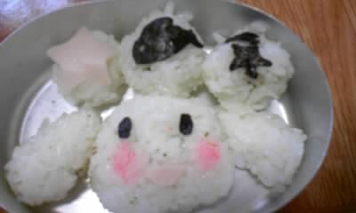 最初、ほっぺもハムで作ってたけど桜でんぶがあったので