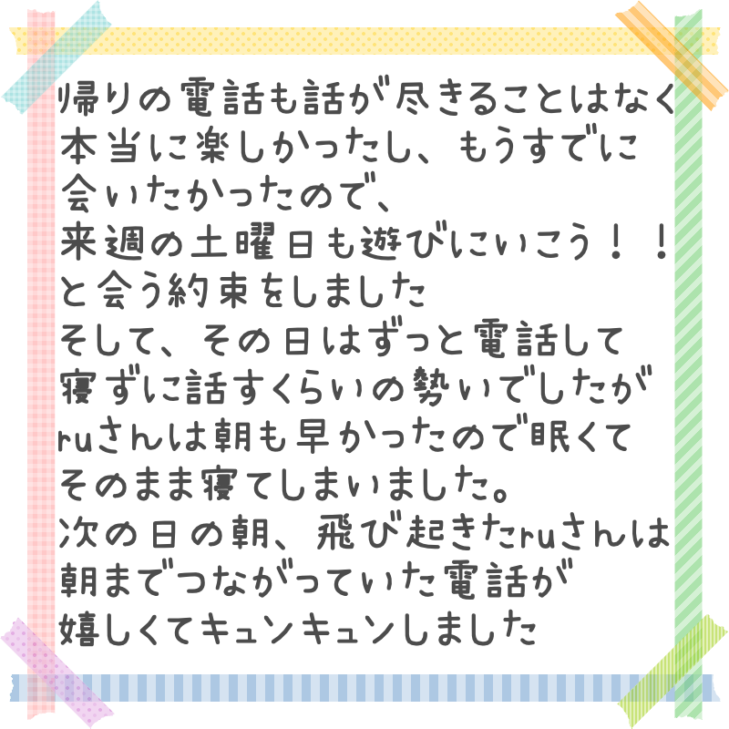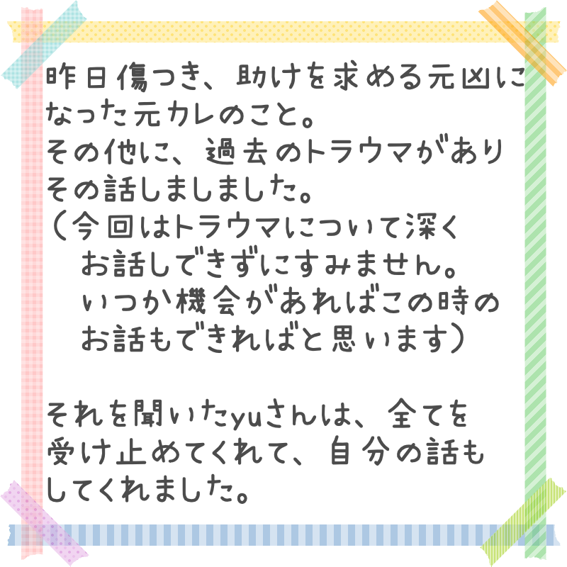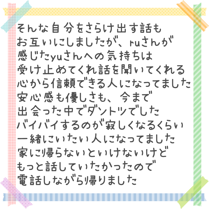 そして、yuさんと会ってから次会うまでの1週間は本当にいろんな話をし、