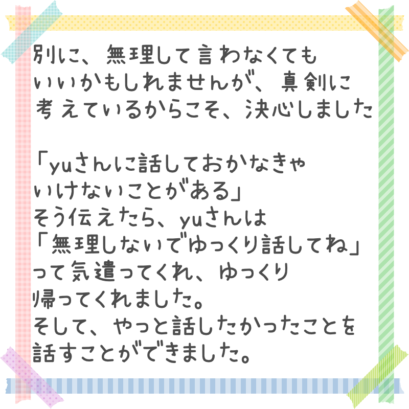 今振り返ると、勇気を出して話してみてよかったなって思います٩( ᐛ )و