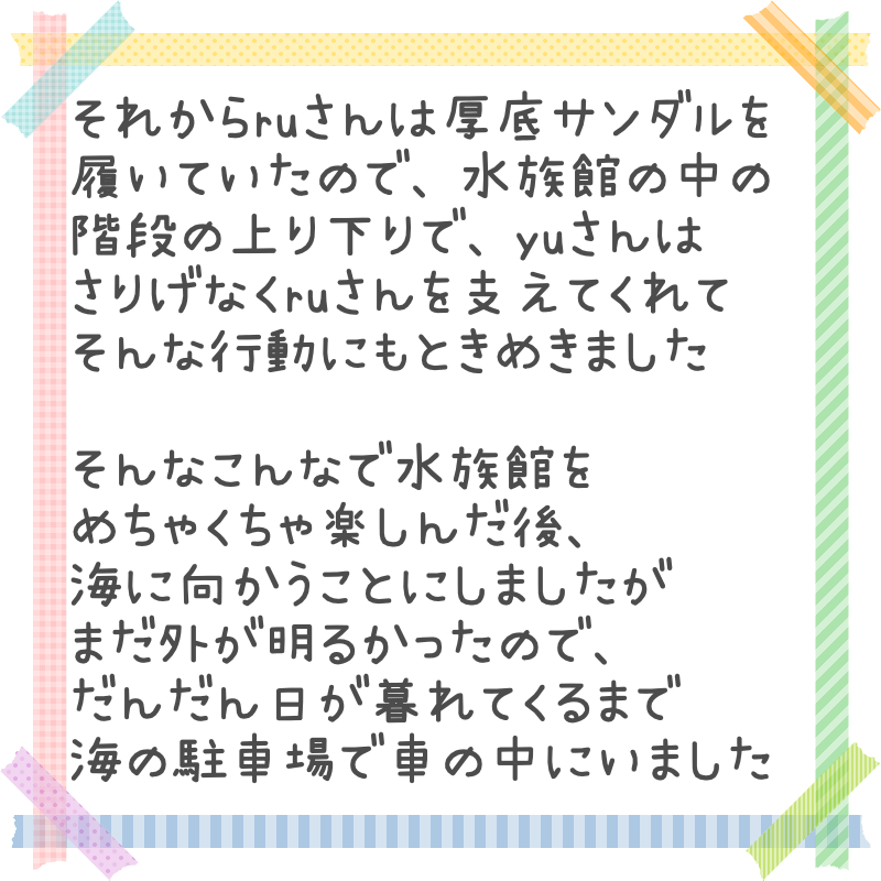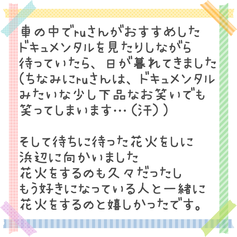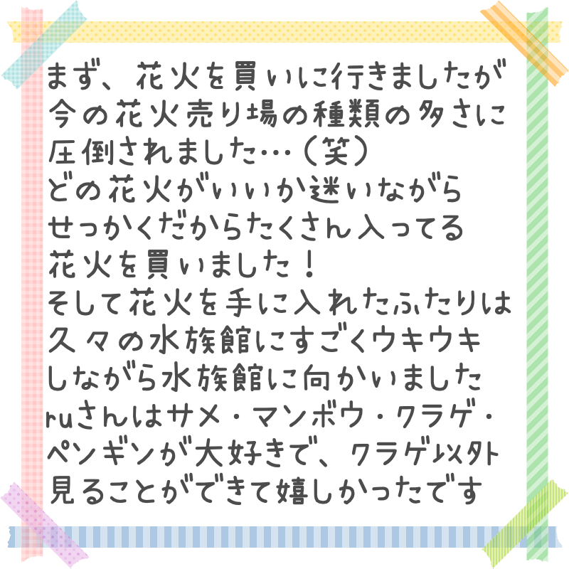 水族館に行けたのも、花火をできたのもそれを覚えていてくれたことも心の底から嬉しかったです。