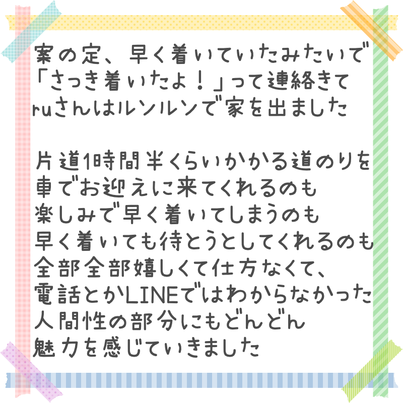 早くついているのに、待ってくれるyuさんの優しさに感動したruさんです・:*+.\(( °ω° ))/.:+